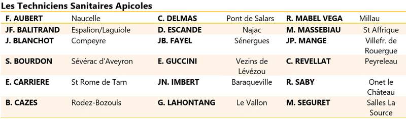Le GDS Apicole a structuré le maillage sanitaire apicole dans l’Aveyron en partenariat avec FODSA-GDS Aveyron. Ce maillage se compose de 2 vétérinaires conseil et de 18 Techniciens Sanitaires Apicoles (TSA). Les vétérinaires et/ou les TSA réalisent une visite tous les 5 ans de chaque apiculteur adhérent au GDSA. Le but est de conseiller sur les traitements et, si l’apiculteur le souhaite, d’amener leur expertise sanitaire au service des apiculteurs adhérents.